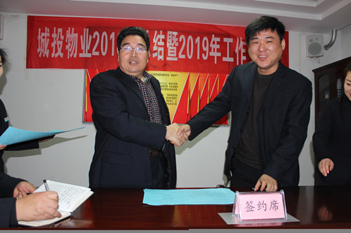 會議表彰了物業(yè)公司2018年度先進班組和先進個人,并完成了2019年度《經(jīng)營目標責任書》和《安全目標責任書》的簽訂。